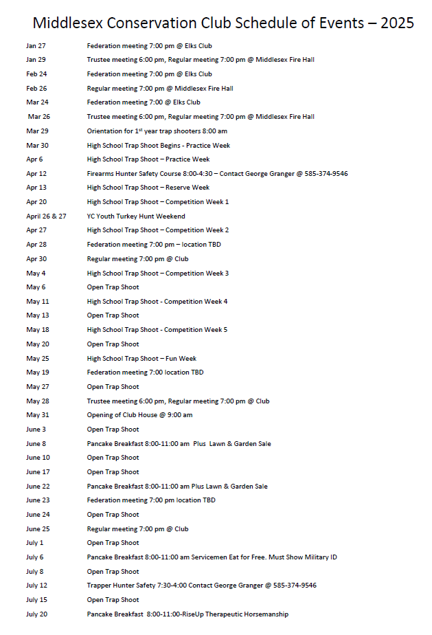 Thank you for taking an interest in becoming a member of the Middlesex Conservation Club. Your membership covers all people residing at your address. Dues are currently $20.00 per year with membership running January 1st through December 31st. If you become a member between October through December, your membership is good though the following year.